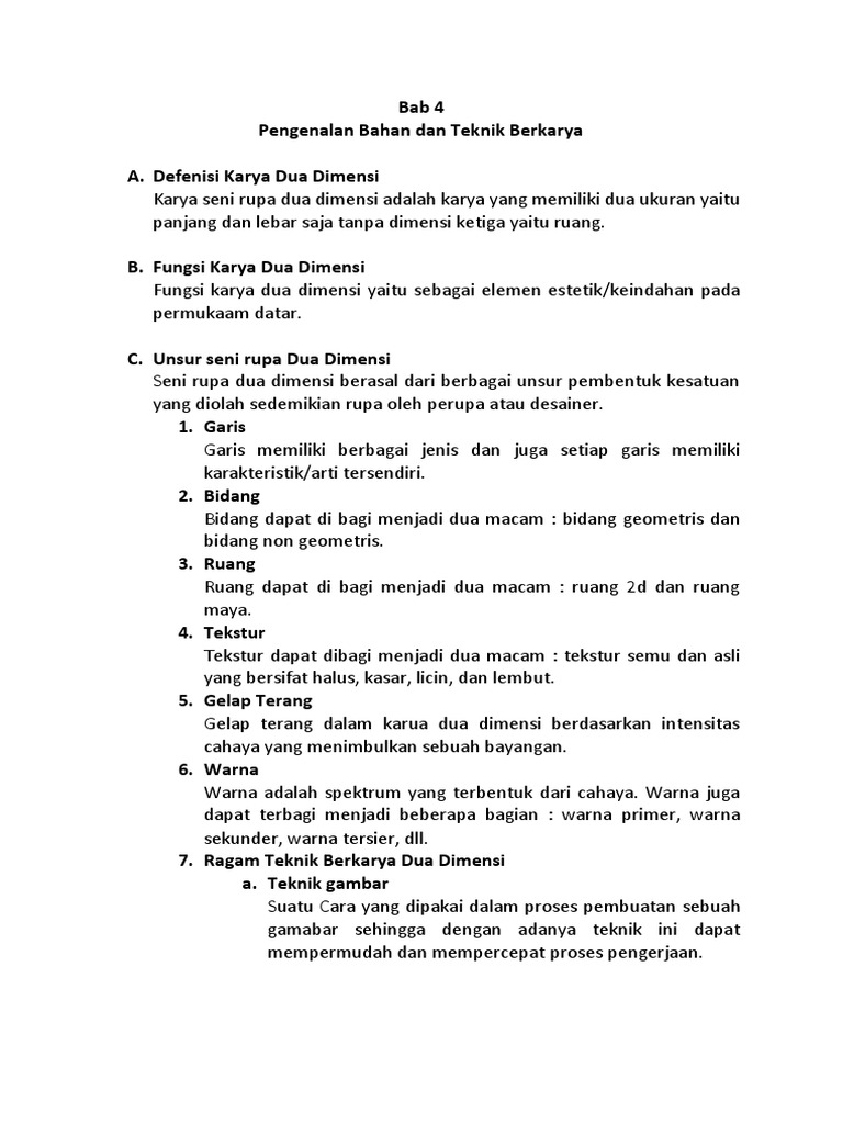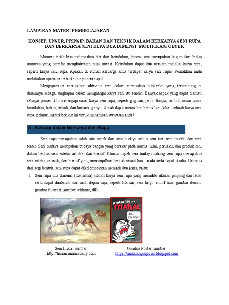 Pengenalan Bahan Dan Teknik Berkarya Seni Rupa Pdf