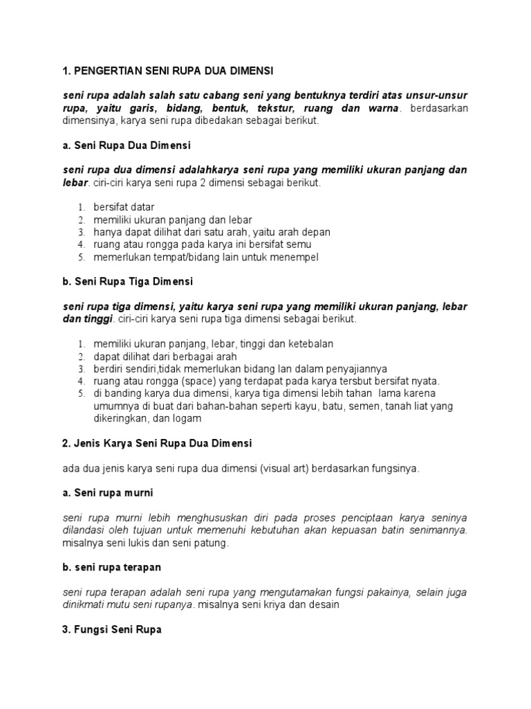 Sebutkan Ukuran Karya Seni Rupa Dua Dimensi Dan Tiga Dimensi Brainly Co Id